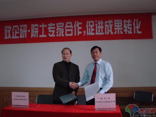 中科院過程工程研究所正在與江神化工有限公司合作研發(fā)3個(gè)高新產(chǎn)品,其中1個(gè)產(chǎn)品已進(jìn)入中試階段。市科協(xié)幫助聘請(qǐng)中科院院士李洪鐘、中國(guó)工程院院士張懿,于12月10日在北京簽訂了全面科技合作協(xié)議。