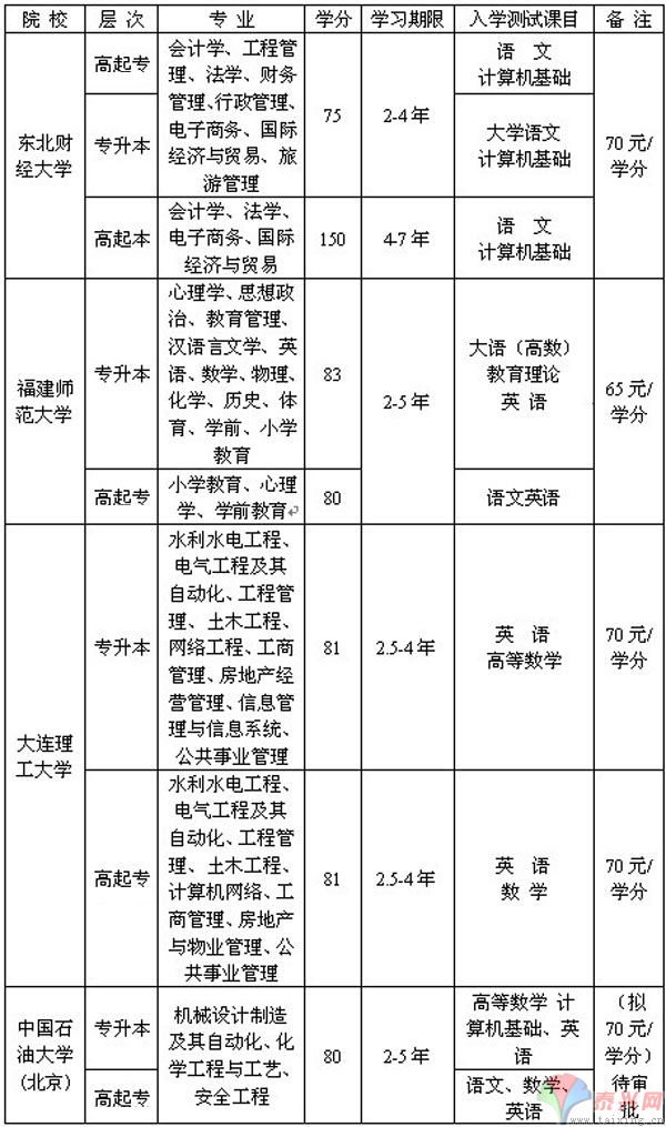 (3)注冊與收費:學生在注冊時按省教育廳、省物價廳、省財政廳規定的收費標準辦理繳費手續,學費57、5元/學分(專科)合70元/學分(本科),考試費50元/門。