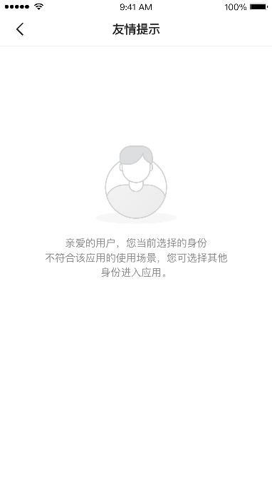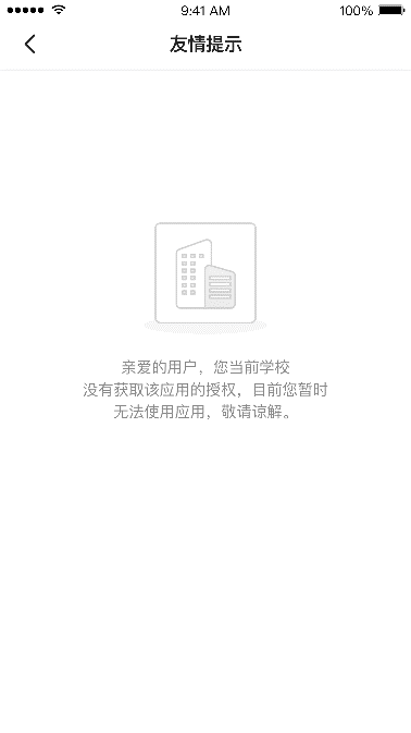 選擇身份 友情提示用戶(hù)登錄泰興一卡通APP,底部菜單點(diǎn)擊【生活服務(wù)】,在【校園教育】中點(diǎn)擊應(yīng)用,成功綁定賬號(hào)并選擇身份后,有以下四種情況:情況一:用戶(hù)綁定的賬號(hào)選擇的身份,該應(yīng)用有權(quán)限,則不進(jìn)入友情提示頁(yè)面,直接進(jìn)入該應(yīng)用頁(yè)面;情況二:用戶(hù)綁定賬號(hào)機(jī)構(gòu)或?qū)W校沒(méi)有該應(yīng)用權(quán)限,進(jìn)入友情提示頁(yè);情況三:用戶(hù)綁定賬號(hào)的機(jī)構(gòu)或?qū)W校有應(yīng)用權(quán)限,但是用戶(hù)選擇的身份沒(méi)有該應(yīng)用權(quán)限,進(jìn)入友情提示頁(yè);情況四:用戶(hù)綁定的賬號(hào)選擇的身份沒(méi)有應(yīng)用權(quán)限,進(jìn)入友情提示頁(yè);