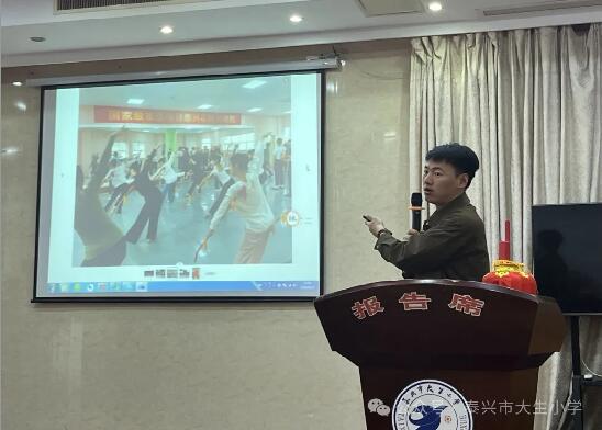 緊接著,胡盛主任問隊員們“你們知道我國的民族舞有哪些嗎?”在這一問一答中,隊員們對我們泰興本土文化——泰興花鼓產生了濃厚的興趣。 胡盛主任用一張張精美的圖片,向隊員們介紹泰興花鼓發源于泰興市廣陵區南沙鄉的一種民間舞蹈,因為用道具“紅燈”照明,所以又稱“夜火燈”,至今已有三四百年的歷史,目前可追溯四代傳承。我們的“泰興花鼓”在150年前就成為成熟的民間舞蹈。 胡盛主任又用一段段精彩的表演視頻,生動地向隊員們講述了“泰興花鼓”的曲調主要有三個,分別是花鼓調、跨金索和倒花籃,有著濃郁的蘇北民間小調風味,氣氛熱烈、歡快、喜慶。