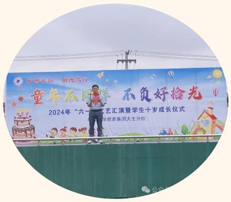 伴隨著暖風,生小娃帶著幸福的微笑,邁著輕快的步伐,手拉手穿過十歲成長門。揮揮手,告別天真可愛的兒童時代;向前走,走進多姿多彩的少年時光! 校長致辭 鮮衣怒馬少年時,不負韶華行且知。 襟江小學教育集團大生分校申高峰校長為孩子們送上美好的祝福,提出殷切期望:要飲水思源,心懷感恩,修身勵志,行穩(wěn)致遠;不負重托,不辱使命,不念過往,不懼前行;砥礪征途,奮而不輟,不負當下,未來可期,抓住飛逝的時光,厚積于斯,薄發(fā)未來,做一個溫暖而上、向光而行的生小少年。