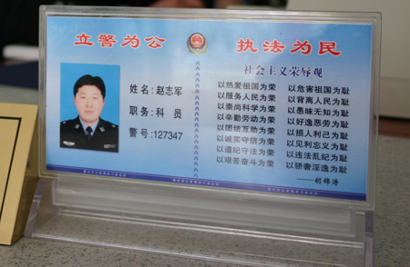 圖:該局濟川派出所將“八榮八恥”內(nèi)容制作成臺簽,置于民警的辦公桌上,便于民警時時對照,群眾時時監(jiān)督。