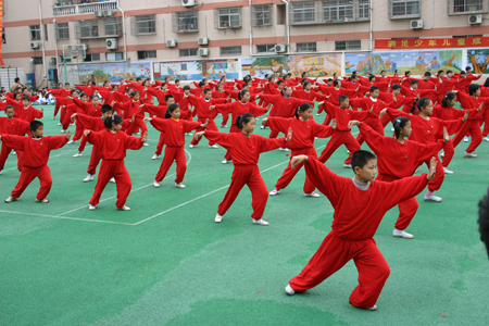 該市少先隊(duì)員正在進(jìn)行太極拳表演