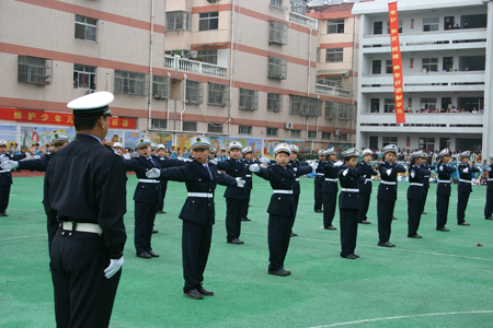 4月26日下午,團(tuán)中央、省少先隊(duì)負(fù)責(zé)人、泰州市領(lǐng)導(dǎo)和來(lái)自全國(guó)各地,參加全國(guó)少先隊(duì)工作培訓(xùn)班暨《少先隊(duì)輔導(dǎo)員工作綱要(試行)》高峰論壇的300多名少先隊(duì)輔導(dǎo)員代表,在泰興市中心小學(xué)觀摩了該市少年軍警校技能表演和藝術(shù)體操表演,對(duì)該市少先隊(duì)工作給予了高度評(píng)價(jià)。(張可  朱笑天  陸裕順攝報(bào))