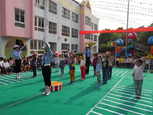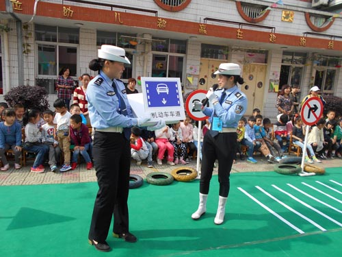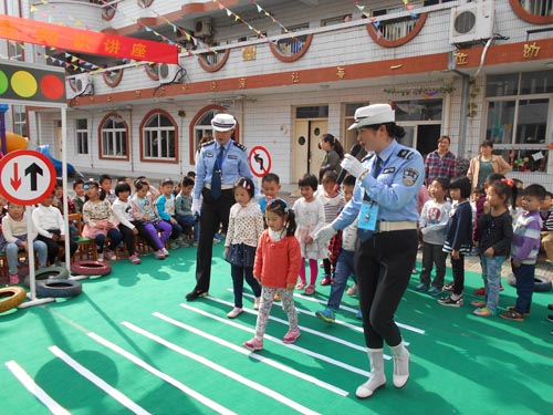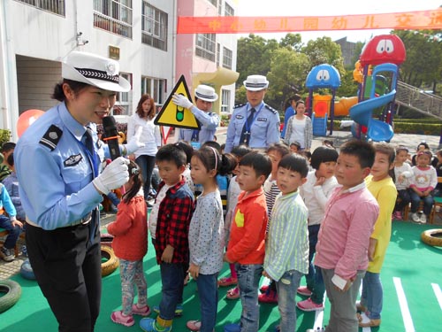 為了進一步落實交通安全宣傳從娃娃抓起,5月6日下午 “全國巾幗文明崗”——江蘇省泰興公安交警大隊女子班的“警花“們來到泰興市中心幼兒園開展道路交通安全宣傳活動。她們為中心幼兒園的小朋友設置了模擬交通路口、紅綠燈、交通標志標線,和小朋友一起做交通安全小游戲、開展交通指揮手勢表演、交通安全有獎競答、交通標志圖片識別,通過系列的活動使小朋友們認識交通、體驗交通、了解交通、關注交通,同時教育了小朋友們在日常的生活中注意交通安全。活動共有300余名師生參加,受到了孩子們喜愛。( 張繼軍 黃新麗)