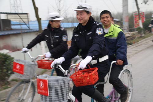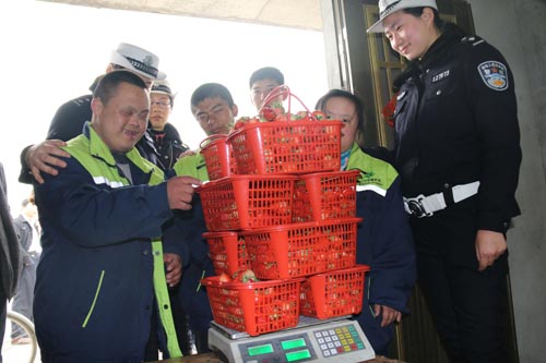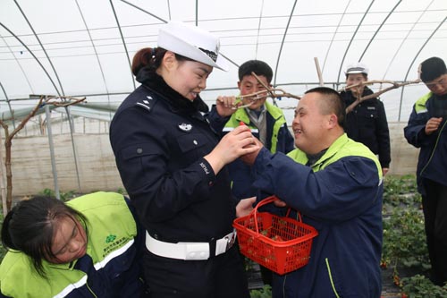 活動中,民警、輔警們騎著同心車一路馱著蘇馨家園的11位園友來到河失鎮石橋村草莓園,帶領園友們學摘草莓。他們時而了解草莓的生長過程、時而開展采摘比賽,園友們心情暢快,大伙兒時不時地嘗上一口新鮮的草莓。一籃籃滿載的草莓,讓這些身殘志堅的園友們體驗勞動的快樂,品嘗收獲的喜悅,感受美好的春天。