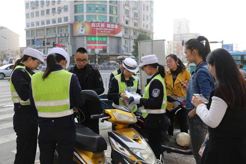 (8時整,多部門協作,聯合整治行動開始了) 為配合現場直播,大隊一方面整合新區、城區警力,聯合城管、巡特警、治安等相關部門,多點位開展整治行動,法制宣傳中隊全力做好協調、對接工作。另一方面大隊邀請交通志愿者開展交通安全勸導活動。