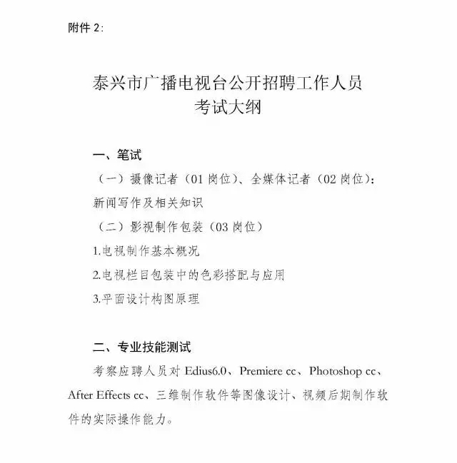 2.《泰興市廣播電視臺公開招聘工作人員考試大綱》