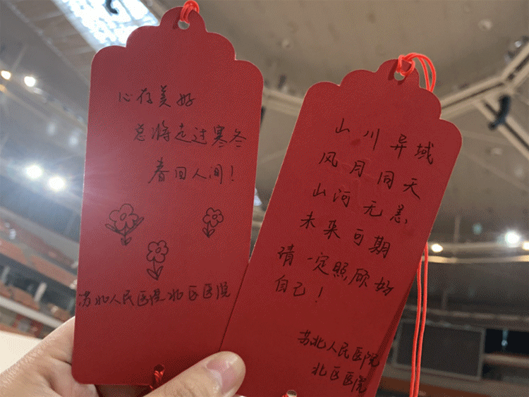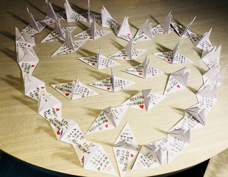 世界這么大,難得遇到你 為了拉近與艙內患者們的距離,讓患者能保持心情愉悅,醫務人員使出了“十八般武藝”: 有的醫務人員利用休息時間折了很多千紙鶴送給患者,每一只千紙鶴上寫著對患者的祝福:“期待您早日康復”,“武漢加油,中國加油”,“堅定信心,期待春暖花開。”