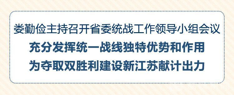 荔枝新聞?dòng)?nbsp;3月10日,江蘇省委書記、省委統(tǒng)一戰(zhàn)線工作領(lǐng)導(dǎo)小組組長(zhǎng)婁勤儉主持召開省委統(tǒng)一戰(zhàn)線工作領(lǐng)導(dǎo)小組會(huì)議,回顧總結(jié)去年全省統(tǒng)戰(zhàn)工作,研究部署今年工作任務(wù)。婁勤儉強(qiáng)調(diào),要堅(jiān)持用習(xí)近平新時(shí)代中國(guó)特色社會(huì)主義思想統(tǒng)領(lǐng)統(tǒng)戰(zhàn)工作,提高政治站位,增進(jìn)思想共識(shí),凝聚智慧力量,為服務(wù)全省工作大局作出新的更大貢獻(xiàn)。