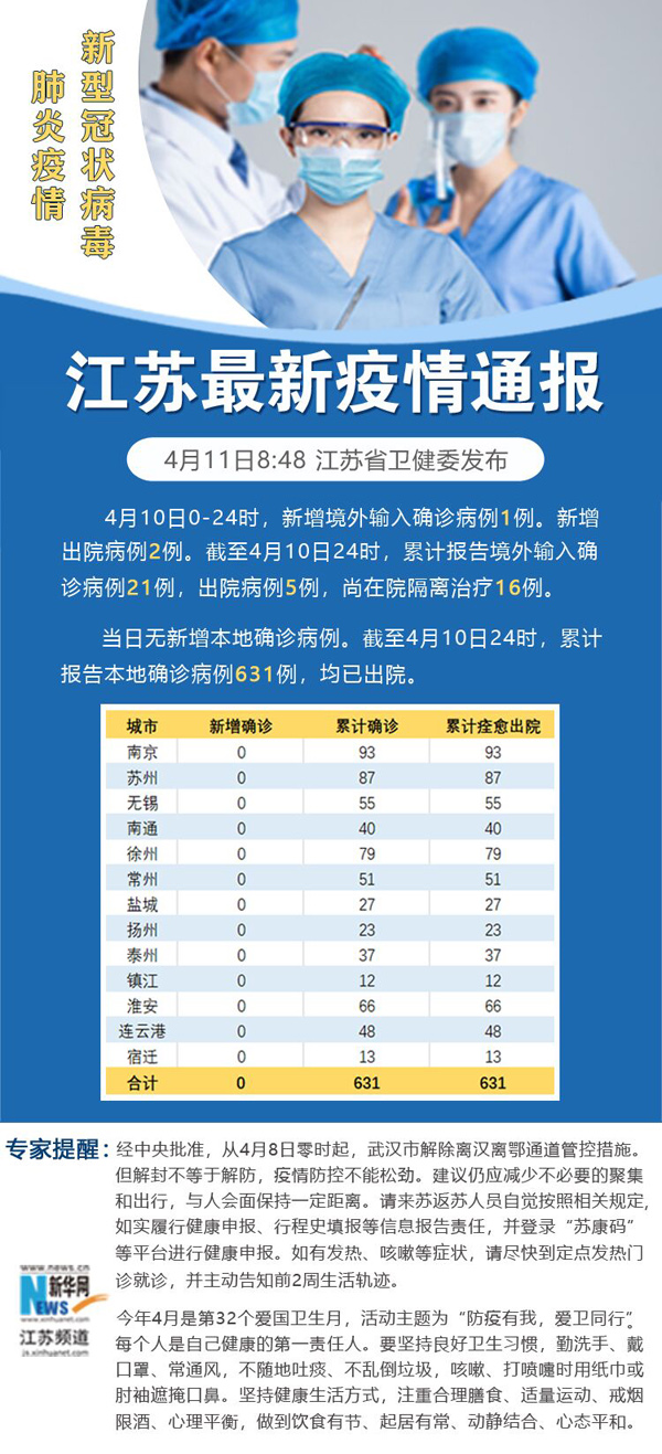 4月10日江蘇新增境外輸入新冠肺炎確診病例1例