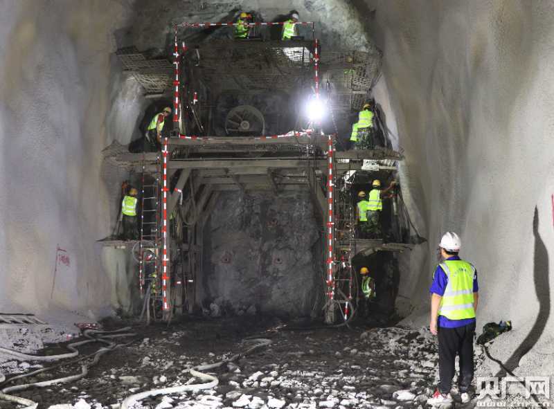 紅豆山隧道出口提前貫通(央廣網發 通訊員供圖) 紅豆山隧道全長10.6公里,正洞總體完成8.8公里。此次貫通的隧道2號斜井正洞大里程至出口施工任務為3113米,受瀾滄江斷裂帶、南汀河斷裂帶影響劇烈,地質構造復雜,花崗巖蝕變嚴重,圍巖強度低,遇水泥化。穿越斷層4個,總長度達465米,穿越淺埋段48米,最小埋深僅有14米!皟H正洞大里程所施工的990米圍巖劣變率就高達100%,出口圍巖劣變率高達63.5%,圍巖變化快,預判難度大,是這段區間施工面臨的最大困難!敝需F十局西北公司二工區經理黃惠軒說。