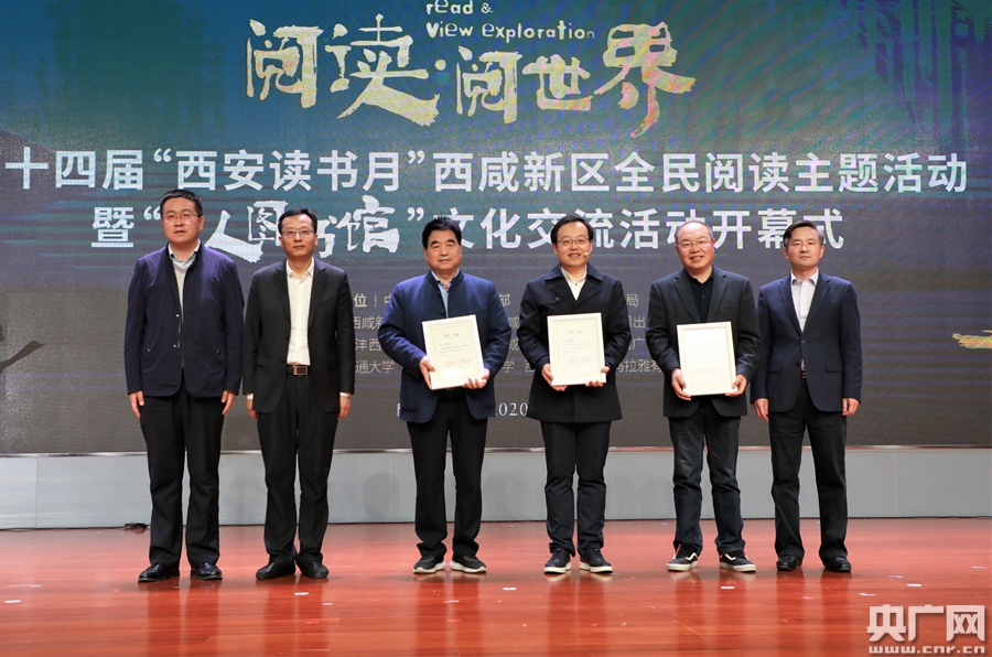 3位嘉賓受聘為2020年度灃西新城“真人圖書”(央廣網(wǎng)記者 舒隆煥 攝) 據(jù)統(tǒng)計(jì),近兩小時(shí)的“真人圖書館”直播,共有80余萬名網(wǎng)友在線觀看,實(shí)時(shí)互動(dòng)。 當(dāng)閱讀遇上“云”,拉近了閱讀者的距離,架起了連通世界的橋梁。直播期間,來自“一帶一路”沿線國(guó)家的“陜西村”、吉爾吉斯科學(xué)院東干研究所研究員熱赫麥在“云端”互動(dòng)時(shí)說,近年來我們用陜西方言講述當(dāng)?shù)亻喿x習(xí)俗和展示用來學(xué)習(xí)中國(guó)文化的課本和書籍。“我們也希望用‘云端’閱讀的方式,傳承中國(guó)文化,傳播中華文明。” 知名作家、茅盾文學(xué)獎(jiǎng)獲得者陳彥通過“云”寄語向網(wǎng)友分享閱讀的魅力。“讀書的目的性不要太強(qiáng),努力讓它成為一種均衡營(yíng)養(yǎng)的吸收!彼f,偶爾讀一兩本書效果不大,讀書應(yīng)成為我們生活的一部分,長(zhǎng)期堅(jiān)持就會(huì)將讀書與知識(shí)、文化、生活等融會(huì)貫通。 記者了解到,西咸新區(qū)灃西新城今年的“真人圖書館”文化交流活動(dòng)是以“閱讀·閱世界”為主題的第十四屆“西安讀書月”的重要組成部分。西安市委宣傳部副部長(zhǎng)、西安市新聞出版局局長(zhǎng)劉新鋒表示,每年世界讀書日的前后,各地都會(huì)舉辦形式多樣的閱讀活動(dòng),“閱讀·閱世界”連上“云端”,就是希望多渠道、多形式地推動(dòng)公眾閱讀,在西安營(yíng)造共享知識(shí),溝通心靈的閱讀氛圍,推進(jìn)書香之城建設(shè),鏈接世界,共同擦亮人類文明的底色。 |