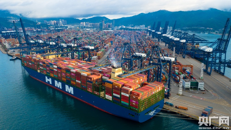 全球最大24000標箱級集裝箱船首航鹽田國際(央廣網發 通訊員王喆供圖) 央廣網深圳5月8日消息(記者鄭柱子 通訊員王喆)2020年5月7日晚,位于深圳的鹽田國際集裝箱碼頭迎來了目前全球最大運載量的集裝箱船——“HMM Algeciras(現代商船阿爾赫西拉斯)”輪首航。