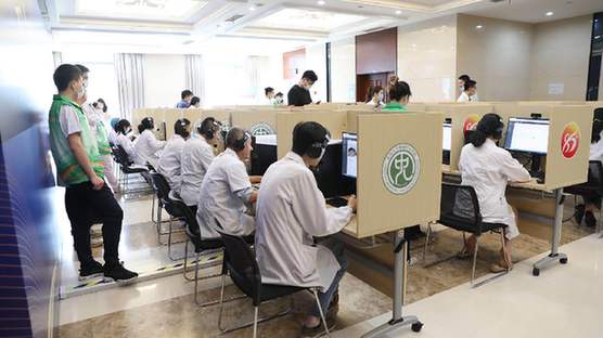 106名專家云端義診、5G網絡保障視頻在線暢通……5月16日,通過互聯網醫院舉辦的云端義診活動在東南大學附屬中大醫院舉行,吸引了大批網友線上尋醫問藥。 在中大醫院這一云端義診現場,專家們化身“主播”帶著耳機,通過網絡與患者進行視頻交流。“我檢查發現有個4厘米的子宮肌瘤,請問是先備孕還是先手術去除呢?”“從目前的超聲檢查來看,建議你先備孕,但是最好能到三甲醫院做進一步評估。”中大醫院副院長沈楊正通過視頻問診的形式,為患者提供科學診療建議。當日,像沈楊這樣通過互聯網醫院在線義診專家一共有106位。