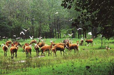 黃海之濱的鹽城,藍天白云,海岸森林,鶴翔藍天,鹿逐大地。晴空一鶴排云上,便引詩情到碧霄。每到秋冬季節,鹽城濕地珍禽國家級自然保護區內,漫天的鹽蒿草為無邊的灘涂鋪上紅色植被,一望無際的蘆葦叢成為遷徙水鳥的天堂。廣袤灘涂,每年都迎來10萬至20萬只越冬候鳥,以及300多萬只遷徙停歇的鸻鷸類候鳥,對遷徙水鳥來說這里是至關重要的“加油站”。