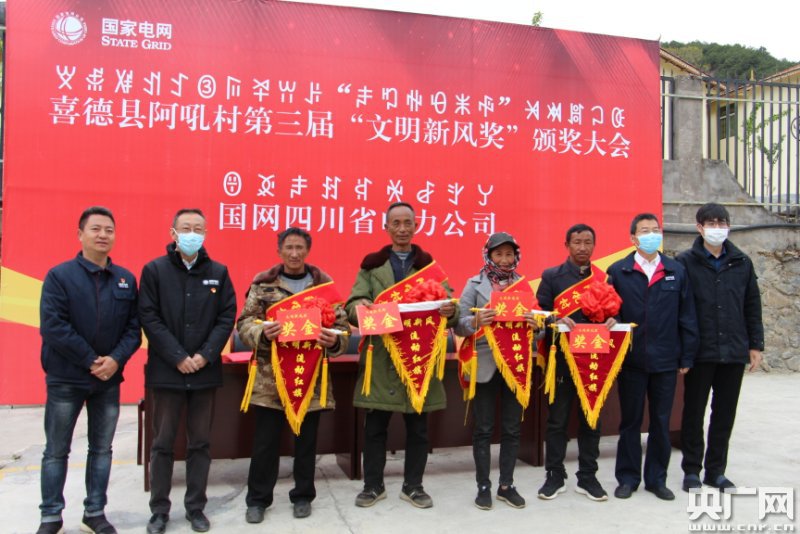 阿吼村文明新風(fēng)頒獎(央廣網(wǎng)發(fā) 王小兵供圖) 國網(wǎng)喜德縣供電公司駐村工作隊聯(lián)合村組干部,從改變村民居住方式、生活習(xí)俗入手,通過“光亮寶寶”“文明大課堂”等活動,倡導(dǎo)文明生活理念,通過文明積分調(diào)動村民養(yǎng)成愛衛(wèi)生的好習(xí)慣。村民曲木立古木說,他們現(xiàn)在都養(yǎng)成了愛衛(wèi)生的好習(xí)慣,“現(xiàn)在我們幾乎每天都打掃兩三遍啊,然受晚上給兩個小娃娃洗手洗腳才睡覺。然后洗澡也是過幾天就洗一次。我們現(xiàn)在對這個環(huán)境衛(wèi)生看法也不一樣了,感覺現(xiàn)在搬到這個新房子里很舒服,環(huán)境好了,心情也跟著變好了。” 國網(wǎng)喜德縣供電公司駐村工作隊隊長、阿吼村第一書記王小兵介紹說,通過三年多努力,阿吼村發(fā)生了巨大的變化,村民不僅做好個人衛(wèi)生和家庭衛(wèi)生,還積極主動參與村集體的各種活動,“每個季度我們會開展一次文明新風(fēng)表彰大會,對于表現(xiàn)最好的四個家庭進(jìn)行獎勵,開大會發(fā)大紅花,發(fā)獎狀。老百姓通過這個大會來感受到獲得優(yōu)勝家庭那種喜悅那種自豪,也刺激到自己吧,希望通過這些方式刺激老百姓,一個方面是激發(fā)自己的那種主動性,一個也是激發(fā)自己的內(nèi)生動力! |