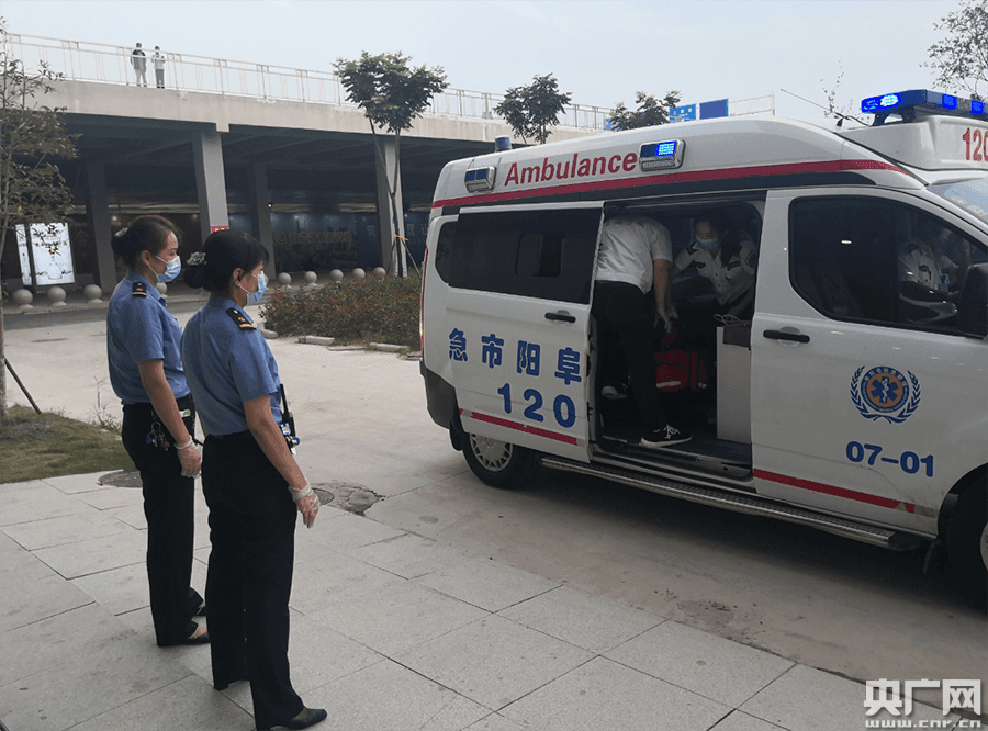 旅客乘車突發疾病(央廣網發 通訊員供圖) 18點38分,G2805次列車提前2分鐘到達阜陽西站,此時,值班站長楊靜、值班員穆書雯、120救護人員已在9號站臺G2805次列車2號車廂停靠位置提前到位。列車停穩后,楊靜、穆書雯立即配合急救人員將處于昏迷狀態的旅客抬上擔架,平穩有序地將急救旅客送上急救車。