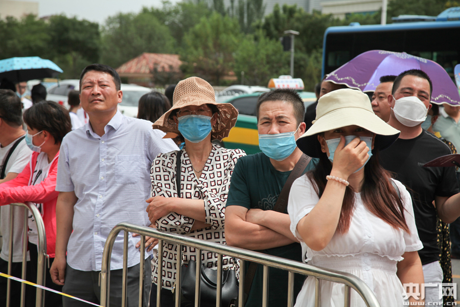 考生排隊(duì)入場(總臺(tái)央廣記者 徐升 攝) 今天,銀川市在連續(xù)高溫天氣之后,迎來了較為涼爽的陰天。在寧夏六盤山高級中學(xué)考點(diǎn),公安民警、考場工作人員提前就位,維持現(xiàn)場秩序,并為考生留出入場通道。考場入口處設(shè)置了紅外測溫間,醫(yī)護(hù)人員全程保障衛(wèi)生健康工作。考試開始前一個(gè)小時(shí),陸續(xù)有考生佩戴口罩排隊(duì)進(jìn)入考場,一些家長、老師身著旗袍、紅色服飾在考生入場隊(duì)伍兩旁加油鼓勁。