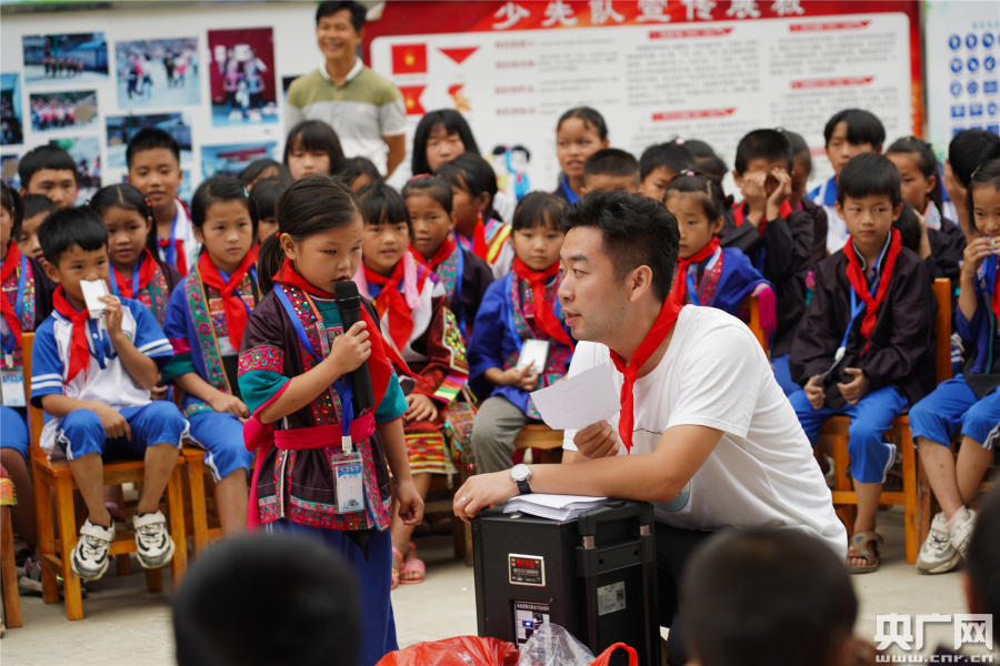 湛江邊檢赴廣西扶貧助學(央廣網(wǎng)發(fā) 通訊員供圖) 現(xiàn)場教育向長效延伸 “敬禮!”當天上午,八吉小學在操場舉行了特殊的升旗儀式,隨著一聲響亮的口號,整齊列隊的邊檢民警和穿著民族服飾的各年級學生向著緩緩升起的五星紅旗敬禮。執(zhí)勤四隊教導員丁大衛(wèi)作為民警代表擔任了升旗手,在他身邊,是兩名擔任護旗手的侗族小學生。活動中,丁大衛(wèi)分享了在國門口岸執(zhí)勤、堅守和抗疫的故感人故事,為學生們開展了一次生動的愛國主義教育。 “聽我說謝謝你,因為有你,溫暖了四季……”孩子們純真的歌聲回蕩在八吉小學的操場上。活動當天,全體學生搬著板凳圍成同心圓,湛江邊檢站邀請駐地學校老師為他們上了一堂生動的聲樂課。短短的兩節(jié)課時間,學生們聽得津津有味,下課鈴響起了也舍不得離開,最后用一首《聽我說謝謝你》說出了對邊檢民警和老師的感恩之心。 助學不僅要捐贈物資,更要“送知識”。八吉小學師資隊伍單薄,教師往往都是“全科教師”,還要負責照顧孩子的生活細節(jié),很難在各類課程上做到精通,聲樂、美術(shù)等“副科”更是主要靠孩子們自己練習。為了解決教學資源匱乏的難題,湛江邊檢站多次走訪,邀請駐地學校與八吉小學簽訂了結(jié)對共建協(xié)議,建立了互助教學的模式,協(xié)議定期開展送教下鄉(xiāng)活動,拓寬教育資源;同時,多方收集駐地優(yōu)秀學校各科目精品課程教學錄像,探索開展線上+線下“雙師教學”,通過播放錄像授課和老師現(xiàn)場教學,讓學生們在山區(qū)也能接觸到專業(yè)、優(yōu)秀的課程教育,進一步豐富學校教學模式,扶志扶智向長遠發(fā)展。 湛江邊檢赴廣西扶貧助學(央廣網(wǎng)發(fā) 通訊員供圖) “他是我最喜歡的英語老師” 當天下午,支教民警農(nóng)衛(wèi)甲接到了學生家長的電話,聽到他任教學生的表現(xiàn),又好笑又心疼。當時,助學活動結(jié)束后,他乘坐車輛到縣城辦事,學生們看見“農(nóng)老師”背著包上車,以為他要結(jié)束支教了,回到家里后不高興又不說話,直到家長問起才哭著說農(nóng)老師以后不來給他們上課了。 今年5月,湛江邊檢站民警農(nóng)衛(wèi)甲主動響應國家移民管理局和珠海邊檢總站支教號召,通過層層選拔成為全國移民管理機構(gòu)77名支教民警中的一員,負責八吉小學三到五年級的英語、體育課程教學任務。“既然做了決定,就要負責到底。” 為了讓課堂更加生動有趣、更好的調(diào)動學生們上課的積極性,農(nóng)衛(wèi)甲絞盡腦汁,每晚備課到半夜一兩點,遇上停電點起蠟燭繼續(xù)奮戰(zhàn)。這份認真和執(zhí)著讓他很快贏得了學生們的喜愛。學生吳歡迎在作文中寫道:“有一個好消息,新來了一位英語老師,他的英語讀得很標準,他是我最喜歡的英語老師。” “學習、洗禮、收獲。終其一生,孩子們的夢想是翻越大山,走向外面精彩的世界。或許更應該的是,首先有人引領(lǐng)他們翻過心中的大山。”參加此次助學活動,一雙雙渴望知識的眼睛,讓負責對口幫扶工作的湛江邊檢站副站長胡志輝深受觸動。他表示,教育是脫貧的治根之策,下一步,湛江邊檢站將繼續(xù)竭盡所能,為八吉小學提供支持,并動員更多的社會團體和熱心人士參與到扶貧助學行動中來,共同用愛心為貧困山區(qū)孩子們的夢想“插上一雙奔跑的翅膀”。