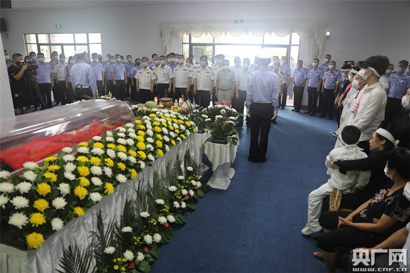 7月4日,戰(zhàn)友、親人送別李秀毅(央廣網發(fā) 警方供圖) “明天期末考試完,爸爸過來接你!边@是李秀毅犧牲前,踏出家門時,對兒子說的最后一句話。6月29日上午,到了約定的時間,李秀毅卻遲遲沒有出現(xiàn)。妻子、同事?lián)艽蛄藬凳畟電話,始終沒有人接聽。當同事們趕到宿舍時,發(fā)現(xiàn)他躺在床上,安靜地就像睡熟了一樣,再也沒能醒來。 他的同事、廈門市公安局同安分局交警大隊新民中隊民警簡順利回憶說,在此之前,他已在工作崗位上堅守了近48小時。簡順利說:“那天可能到晚上11點左右,他把工作布置完,他自己也特別疲勞,特別累,后來就洗澡去睡覺了。到第二天,它房間的門是稍微掩著的,我們協(xié)警把它推開的時候,看他就趴在那里,后來去摸一下,身體有點冰涼,趕快跟領導報告,打電話叫120過來……” 端午節(jié)景區(qū)安保、汽車站防疫執(zhí)勤、摩托車專項整治、酒醉駕設卡盤查……在回宿舍休息之前的48小時里,他連續(xù)工作,查獲各類交通違法行為44起。而這,只是他從警25年來日常工作中的一個縮影。
