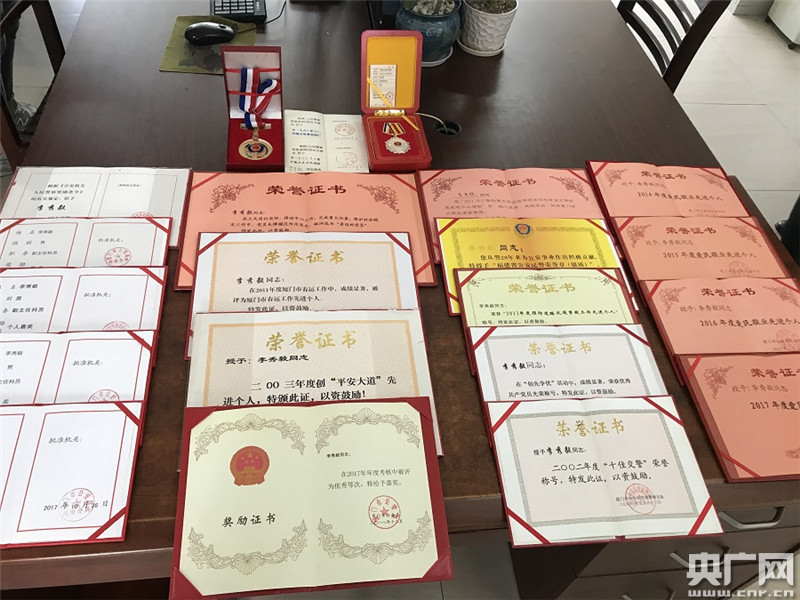 李秀毅生前獲得的部分榮譽獎章和證書(央廣網記者陳庚 攝) 在李秀毅和同事們的努力下,如今,廈門市公安局同安分局交警大隊新民中隊轄區(qū)道路交通狀況明顯好轉,以最復雜的工業(yè)區(qū)為例,交通亡人事故從2018年的15起15人,下降到2019年的5起5人,今年上半年,僅1起1人。 從警25年來,李秀毅先后7次榮獲個人嘉獎、4次獲評“愛民敬業(yè)先進個人”,還被評為廈門市優(yōu)秀人民警察。他的同事們說,他把許多榮譽都讓給了別人,他實際應得的不只這些。 |