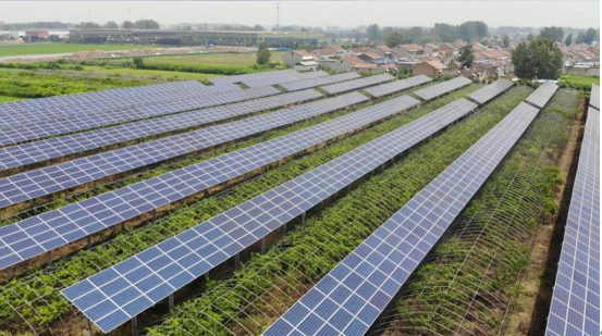 但睢寧迎難而上,自我加壓,以頂格標(biāo)準(zhǔn)和滿格狀態(tài)投入扶貧攻堅(jiān)中,在2019年底交出了一份優(yōu)秀答卷:現(xiàn)行標(biāo)準(zhǔn)下12.78萬建檔立卡低收入人口全部脫貧,人均可支配收入達(dá)到了11845.81元。53個省定經(jīng)濟(jì)薄弱村村均年集體經(jīng)營性收入達(dá)到51.58萬元,其中,25個村超過50萬元,脫貧路直直連上了小康路。 走訪睢寧鄉(xiāng)間,探尋當(dāng)?shù)匕l(fā)展的秘訣,“綠色”是伴隨睢寧蛻變的底色,也是貫穿始終的一個重要主題。 “綠”是綠色產(chǎn)業(yè)的綠 光伏入鎮(zhèn)入村點(diǎn)亮脫貧路 徐州本就是江蘇最早發(fā)展綠色能源產(chǎn)業(yè)的城市。早在2006年,老牌工業(yè)城市徐州在尋求蛻變重生的路上,便決定要擁抱綠色產(chǎn)業(yè),光伏就是主要切入點(diǎn)。 作出這個決策的人們可能也沒想到,他們擁入懷中的不僅是徐州經(jīng)濟(jì)未來的新增長點(diǎn),也是脫貧攻堅(jiān)的發(fā)力點(diǎn)。 在睢寧,利用光伏發(fā)電的扶貧項(xiàng)目就有15個。2014年,縣里首個光伏發(fā)電站落戶在姚集鎮(zhèn)500畝太平山上,隨后的幾年,這種綠色清潔又穩(wěn)定的扶貧項(xiàng)目在睢寧各地落地開花。 官山鎮(zhèn)龍山社區(qū)的農(nóng)光互補(bǔ)扶貧基地以光伏+農(nóng)業(yè)的方式為村集體收入帶來了提升。這里的光伏電站平均每天可利用太陽能發(fā)電7萬度,當(dāng)?shù)卣c建設(shè)方約定,每上網(wǎng)一度電,電費(fèi)里就有一分錢是扶貧基金。去年一年,光伏給鎮(zhèn)里帶來了超過24.8萬元的收入,加上光伏板下發(fā)展農(nóng)業(yè)的收益,僅一年便助力當(dāng)?shù)?個經(jīng)濟(jì)薄弱村成功摘帽。 要是以為光伏只能架設(shè)在平整連片的土地上,那可就錯了。這些年,曾經(jīng)在村民眼里“高大上“的光伏也入鎮(zhèn)入村,在鄉(xiāng)村的角落里默默”吸光吸熱“,點(diǎn)亮著人們的脫貧路。
