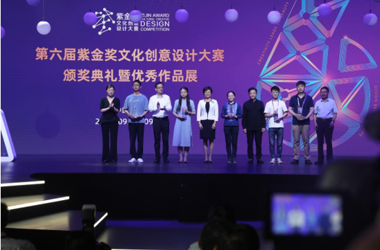 會(huì)上,大賽主承辦單位負(fù)責(zé)人為第六屆“紫金獎(jiǎng)”文化創(chuàng)意設(shè)計(jì)大賽金獎(jiǎng)獲得者頒獎(jiǎng)。