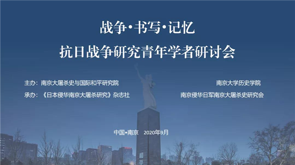 今年是中國人民抗日戰(zhàn)爭(zhēng)勝利75周年,為銘記抗戰(zhàn)記憶,加強(qiáng)青年學(xué)者之間的學(xué)術(shù)交流,9月16-17日,由南京大屠殺史與國際和平研究院、南京大學(xué)歷史學(xué)院主辦,《日本侵華南京大屠殺研究》雜志、南京侵華日軍南京大屠殺史研究會(huì)承辦的“戰(zhàn)爭(zhēng)·書寫·記憶:抗日戰(zhàn)爭(zhēng)研究青年學(xué)者研討會(huì)”以線上形式召開。