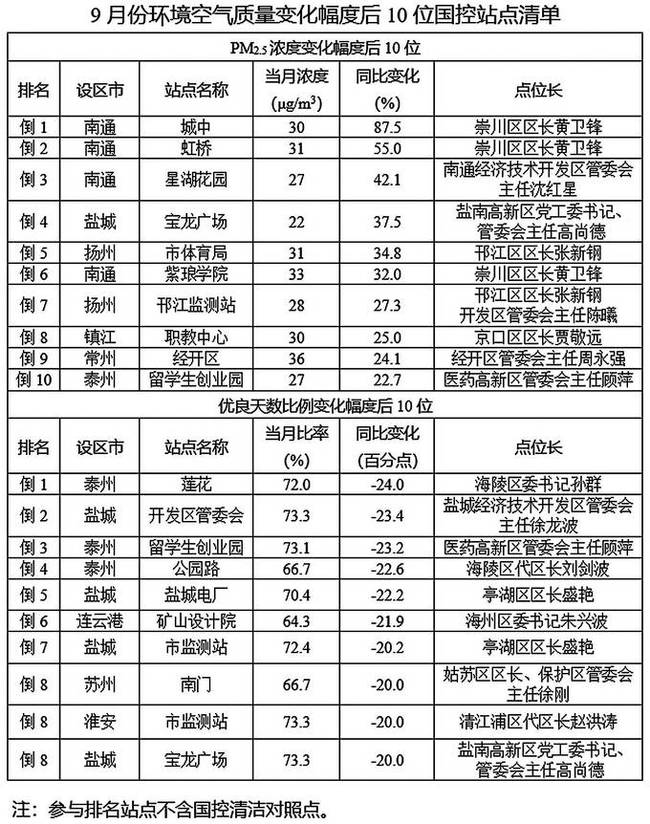 據(jù)省委、省政府關(guān)于打好污染防治攻堅(jiān)戰(zhàn)的實(shí)施意見要求,發(fā)布9月份各設(shè)區(qū)市環(huán)境質(zhì)量約束性指標(biāo)目標(biāo)任務(wù)完成進(jìn)展情況,以及環(huán)境空氣排名靠后站點(diǎn)清單和水環(huán)境突出問題斷面清單。(吳瓊)