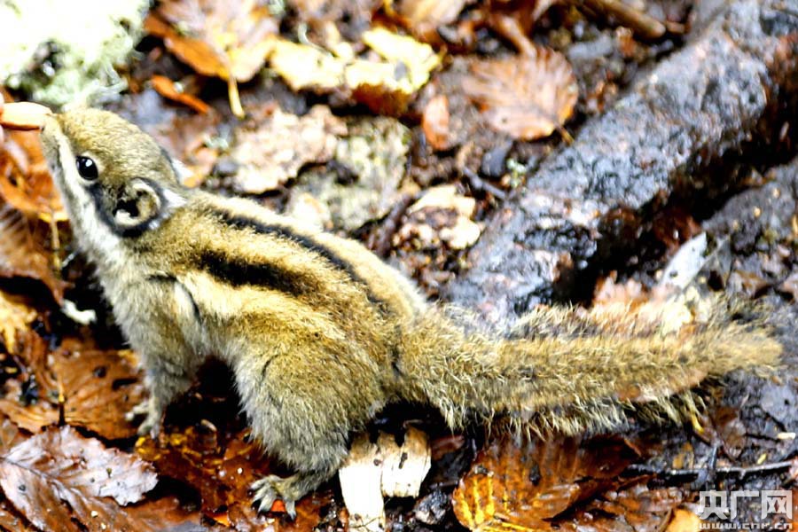 小松鼠叼走餅干(央廣網記者張雷 攝) 采訪團乘坐觀光車來到屬都湖景區,與眾多游客沿著3.3公里步行棧道前行,一路觀賞美景,不停駐足拍照。蒙蒙細雨中,伸向水面的紅葉綠須與煙雨蒙蒙的湖面和遠山宛如迷人的水墨畫。更有萌萌的小松鼠從樹林中跑到步行棧道旁,似乎想向游客討要食物,一點也不怕人。記者拿出攜帶的餅干,小松鼠觀察了一下,嗅了嗅,一口叼住餅干,轉身消失在茂密的叢林中…… |