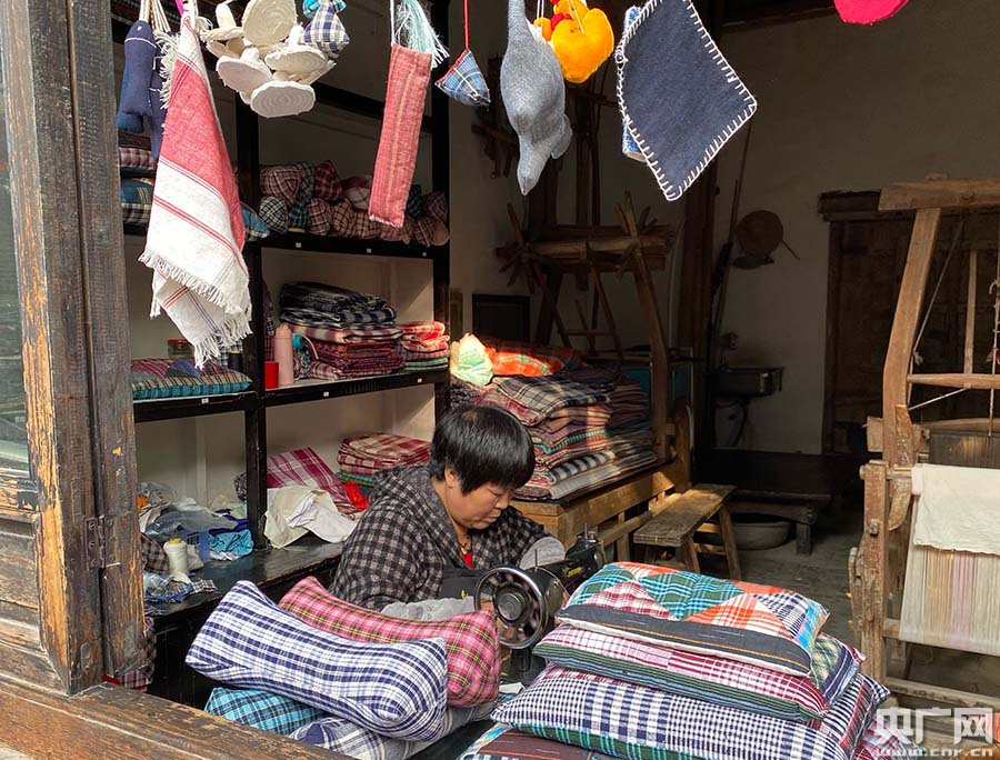 袁家村景區布藝工坊(央廣網記者 鄭皓月 攝) 經過十年的發展,袁家村已經成為國家4A級旅游景區。目前年旅游接待量600萬人次,旅游年綜合收入10億元,村民人均純收入十萬元以上,吸納三千多人就業,帶動周邊萬余農民實現增收。 |