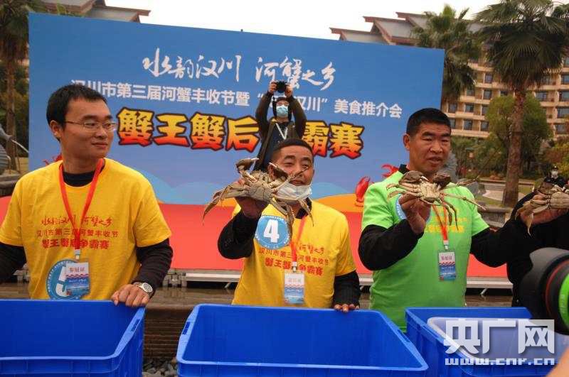 蟹豐收節現場,參賽者展示蟹王蟹后(央廣網發 通訊員供圖) 漢川市于2016年獲得“中國河蟹之鄉”稱號,目前,河蟹養殖面積24萬畝,河蟹產量達4.02萬噸、產值13.6億元。據統計,從每年的9月中旬開始,全國知名的武漢白沙洲市場有近70%的河蟹來源于漢川,銷往全國各地。在大宗農副產品和常規水產品價格低迷的大背景下,以蝦蟹鱖生態混養模式為主的“漢川模式”取得了較好的社會經濟效益,實行了由過去養小蟹到養大蟹、養好蟹的突破。 截至目前,依托“互聯網+現代漁業”電商平臺,漢川市各企業銷售河蟹 1萬多噸,占銷售總量的35%,為漁農增收26%以上。 |
