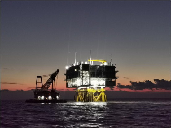 吊裝完成的東臺五期海上風(fēng)電項(xiàng)目升壓站 據(jù)悉,伴隨著海上風(fēng)電開發(fā),江蘇省風(fēng)電技術(shù)水平不斷提高,以高塔筒、大葉輪為特點(diǎn)的低風(fēng)速風(fēng)機(jī)技術(shù)處于世界領(lǐng)先地位,內(nèi)陸140米以上風(fēng)能得到有效利用,鹽城、南通海上風(fēng)電產(chǎn)業(yè)發(fā)展卓有成效,形成了門類齊全、規(guī)模較大、技術(shù)含量較高的海上風(fēng)電產(chǎn)業(yè)體系。江蘇成為全國海上風(fēng)電建設(shè)條件最好的地區(qū),受到各大海上風(fēng)電開發(fā)商的青睞。 |