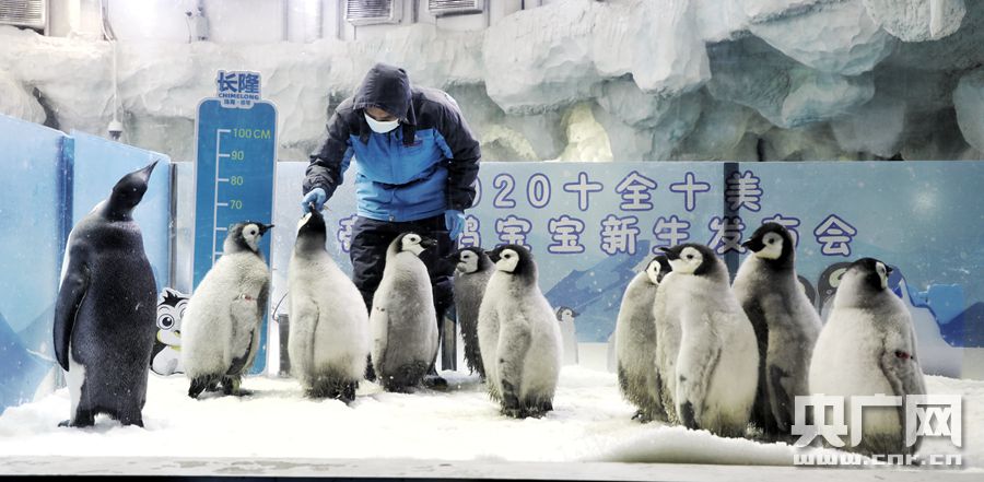 珠海一舉成功繁育9只帝企鵝(央廣網發 通訊員供圖) 據了解,帝企鵝人工繁育一直是業內難題,一只雛鳥的成活要經歷多重的困難。100%的存活率標志著企鵝飼養技術的成熟。資料顯示,世界上現存企鵝共有18種,長隆引進了7種,已有5種成功取得繁殖,而且繁殖數量每一年都在遞增。企鵝對空氣、水質、食物要求非常高,因為它們在野外生活的環境本身就是非常干凈的,因此要實現人工保育環境的繁育需要超高的硬件和技術水平。 據悉,長隆集團的保育團隊在企鵝孵化期間,堅持每天24小時的密切監測。如果幼雛發育良好,能成功孵化,而且親鳥可以喂養,保育員就不會過多干預企鵝的繁育過程,予以企鵝更大的空間。