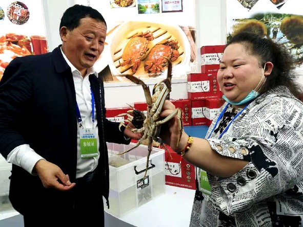 養殖大戶展示洪澤湖大閘蟹 “這只螃蟹1斤3兩,個大,膏肥蟹黃,是這批螃蟹中的蟹王。”在洪澤湖董大螃蟹攤位前,董大向前來選購洪澤湖大閘蟹的市民展示著他的勞動成果。董大從事養蟹已經30多年,他透露說,洪澤湖螃蟹口感好,“秘密”就在于塘口水質、蟹苗、不喂飼料有機養殖一個不能少。據了解,伴隨著螃蟹養殖規模擴大,董大螃蟹養殖基地已經帶動了當地200多名農戶共同致富。 在農業電子商務區,7家企業為南京市民帶來了銀魚、小龍蝦、魚餅等其他洪澤鄉土氣息農特產。這些在網上銷售火爆的產品,在線下同樣受到了消費者的追捧。以香辣小螺絲起家的“漁姑娘”攤位前擠滿了購買手工魚圓、魚餅和香辣小螺絲的消費者。“漁姑娘”姓韓,是一名回鄉創業的姑娘,從她自信的臉上可以看出文靜的底色。她說,酷愛美食的她,當初也只是在微信朋友圈曬曬自己的香辣小螺絲,朋友們都被誘惑的流口水,紛紛要求品嘗,她都爽快的給安排上。隨著大家盛贊聲越來越多,朋友們建議她網上開店專營,觸“電”后,小韓的香辣小螺絲很快火遍網絡,如今江蘇漁姑娘食品科技開發有限公司產品已經涵蓋到手工魚圓、魚餅、小龍蝦等,年銷售近千萬元。借助電商的翅膀,“漁姑娘”把更多的洪澤農特產借助電商、網絡帶到全國各地。