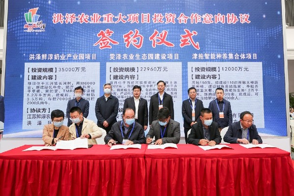 簽約現場 “遍地黃金谷物,滿湖蟹蝦肥,一只螃蟹,一束秋禾,道不盡的家鄉味道,憶不完的濃郁鄉愁。”2020洪澤名特優農產品(南京)展銷會勾起了很多洪澤人的鄉愁,也讓更多關注洪澤發展的他鄉人,因展歡聚,共享豐收的喜悅。展銷會上,16個農業重大項目現場簽訂合作協議,為洪澤農業產業發展、特色農產品品牌培育推廣注入更強勁動力。 據了解,2020洪澤名特優農產品(南京)展銷會以“綠色、生態、健康、融合”為主題,展會將持續到11月15日。(虞啟忠) |