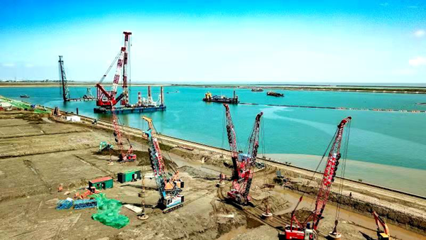 新華網南京12月2日電(虞啟忠)初冬時節,南通啟東呂四港作業區西港池南側,“2+2”碼頭工程正在如火如荼建設中,項目A 標段陸上1364根鋼板樁沉樁工程和陸上PHC樁沉樁作業已經全部結束。B標段后方陸域堆場地基處理全部完成;原圍堰1047根鋼板樁施工全部結束,陸上擋墻260根 PHC樁沉樁作業也已完成。