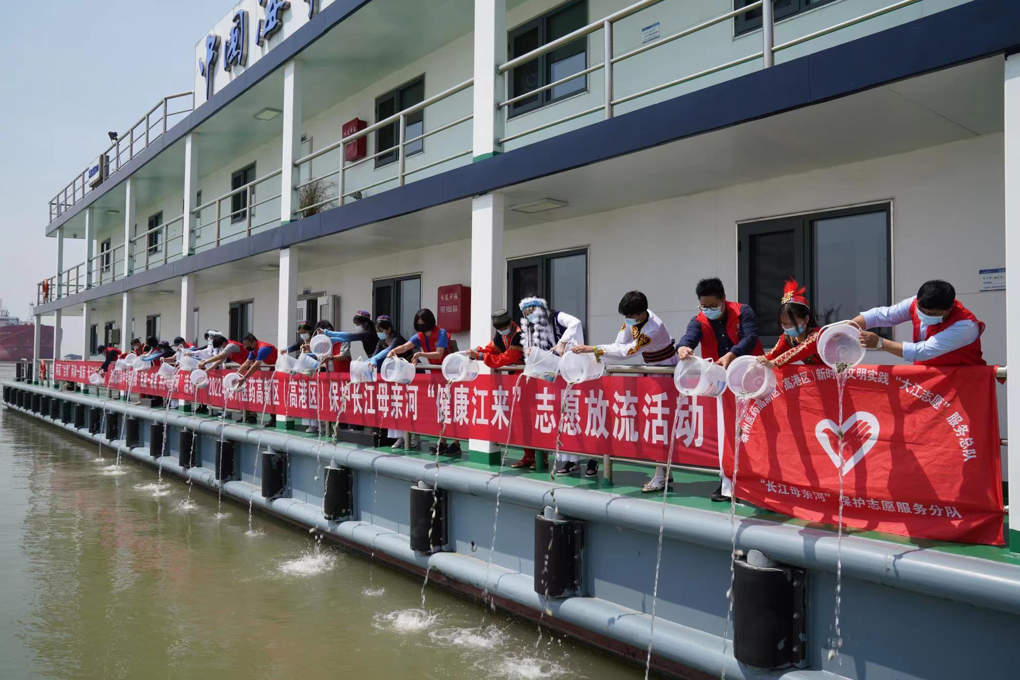 泰州醫(yī)藥高新區(qū)(高港區(qū)):民族一家親 共護(hù)母親河,50名志愿者放流7萬(wàn)尾河豚魚(yú)苗