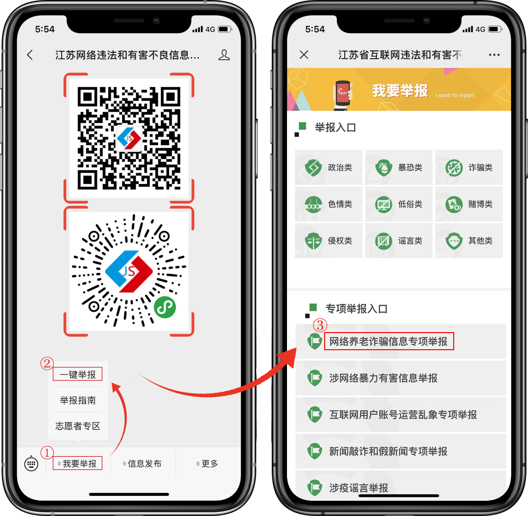 官方微信公眾號及小程序:江蘇網絡違法和有害不良信息舉報