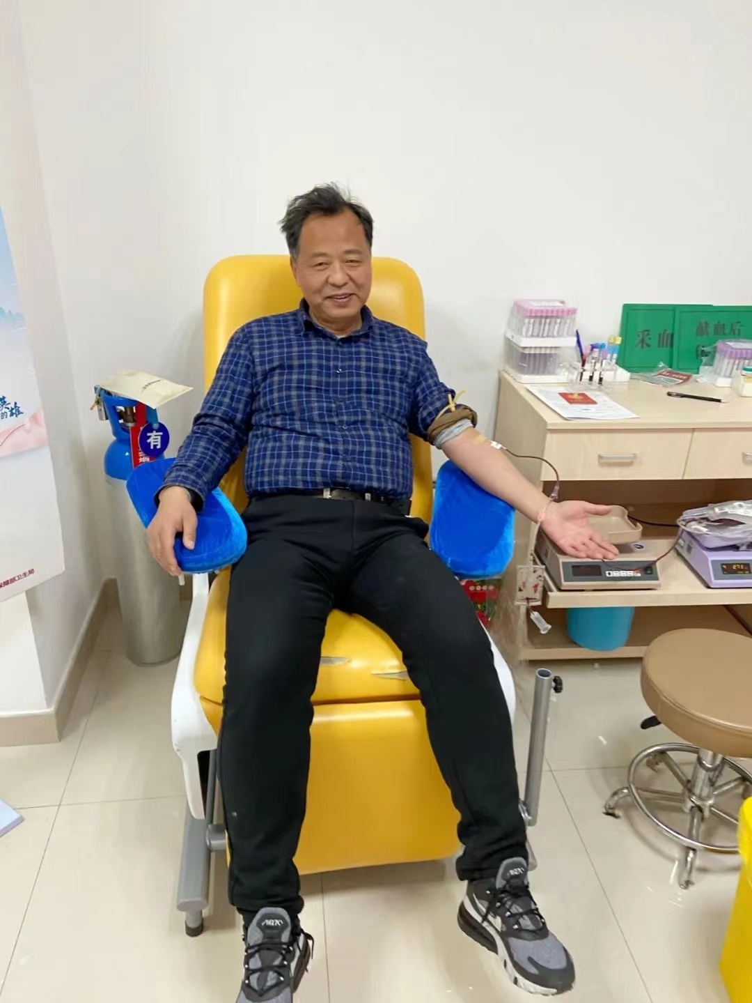 1998年11月26日,在江蘇省興化市人民醫(yī)院工作的蔡鵬洋聽到該市血站血液告急的消息,便趕去獻(xiàn)血,從此開啟了他無償獻(xiàn)血的愛心之路。 此后,蔡鵬洋每年都會參加無償獻(xiàn)血。無論在工作崗位上,還是在家中,只要血站血液告急或遇上患者急救需用血時,他總是風(fēng)雨無阻,隨叫隨到。除了自己無償獻(xiàn)血,蔡鵬洋還經(jīng)常在各種場合向親友、同事普及推廣獻(xiàn)血知識,帶動大家一起獻(xiàn)血。在他的感召下,不少人加入到無償獻(xiàn)血的隊伍中。 “獻(xiàn)血是件快樂的事,因為這是在幫助他人。”蔡鵬洋說,為了獻(xiàn)出合格的血液,他十分注重鍛煉,每天騎車上下班,平時經(jīng)常跑步,在單位被稱為“運動健將”。每次去獻(xiàn)血時,他的血液指標(biāo)符合相關(guān)要求,自己就會感到幸福和自豪。 據(jù)統(tǒng)計,從1998年11月至今,蔡鵬洋累計獻(xiàn)血9800毫升,相當(dāng)于兩個成人全身血量,已幫助49人脫離險境。