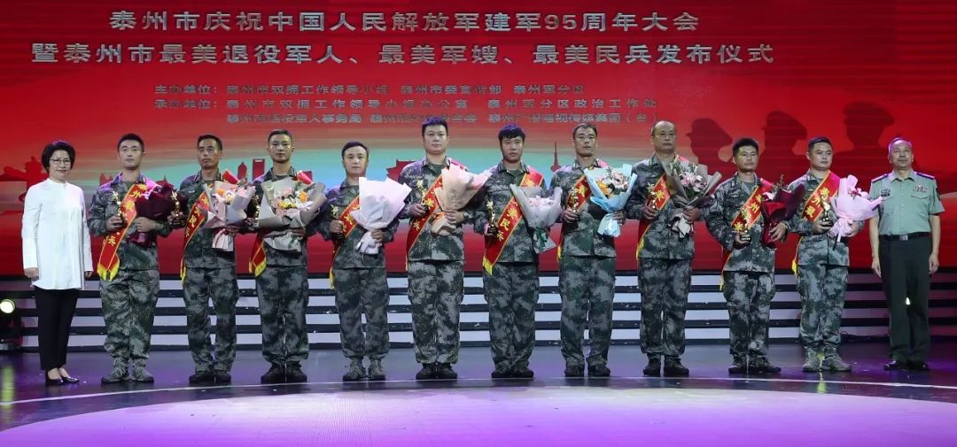 “八一”建軍節到來之際,7月29日下午,泰州市各界隆重集會,慶祝中國人民解放軍建軍95周年,表彰最美退役軍人、最美軍嫂、最美民兵,共慶建軍節、共敘魚水情。