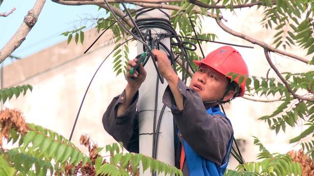 江蘇泰州:“空中飛線”集中整治讓城市亮出美麗“天際線”