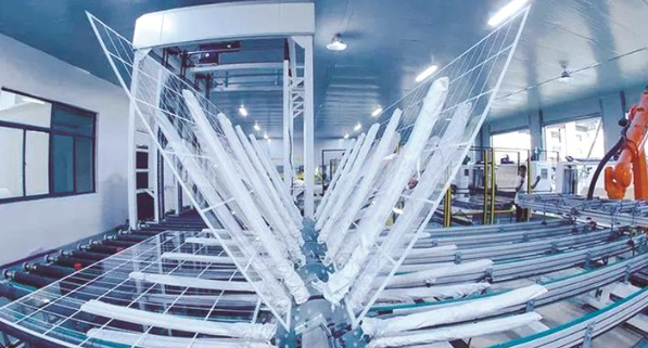 “電池片每天可以生產170萬片,每月達到5700萬片,預計每年可達到7億片。”一道新能源科技(泰州)有限公司技術總監(jiān)吳新榮說。 索拉特特種玻璃是一家生產太陽能應用領域新型玻璃材料的企業(yè)。先后獲得ISO質量體系認證、3C強制性產品認證等多項權威認證。由于企業(yè)一直與園區(qū)的隆基樂葉有深度合作,2020年,索拉特特種玻璃項目來到泰州,在這里開啟了“隔墻供應”的全新產業(yè)配套格局。 “入駐園區(qū)后,大大降低了我們的物流成本。這里有跟隆基相類似的組件廠,我們在政府的幫助下,達成了密切合作。目前我們雙玻產品在全國的市場占有率已經達到了30%。”泰州索拉特特種玻璃有限公司總經理劉雁山說。