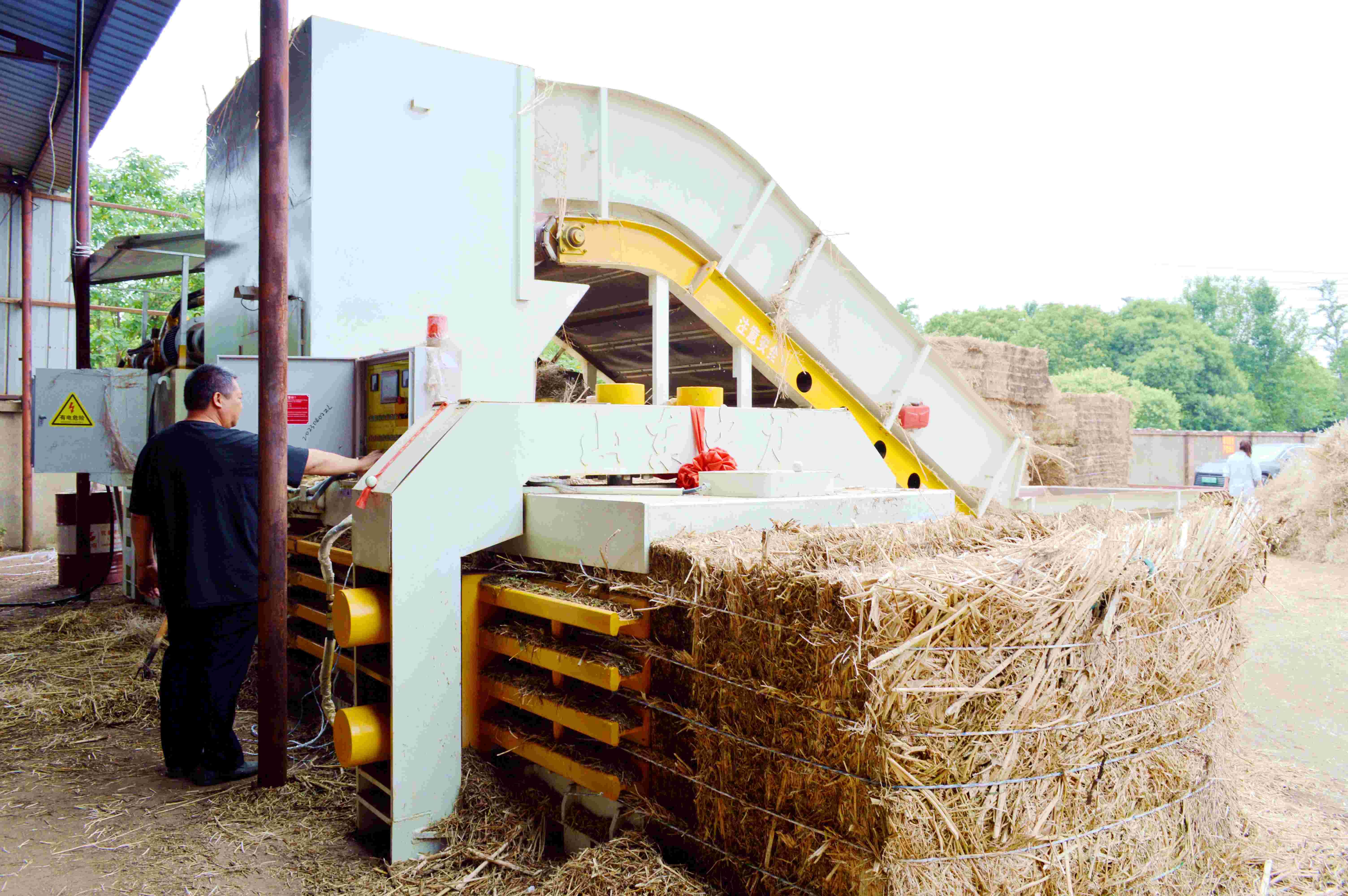 在罡楊鎮(zhèn)楊莊社區(qū)秸稈收儲加工點,油菜秸稈堆積如山,拖拉機還在源源不斷地送來秸稈。加工點機聲隆隆,抓草機忙著抓取秸稈送到秸稈壓捆機輸送帶上。松散的秸稈經(jīng)過機器壓實打捆,變成了一個個方形秸稈捆。 “過去,油菜秸稈沒地方去,往往是村里找?guī)讉臨時堆放點堆放,每天由村(社區(qū))工作人員放水堆腐轉(zhuǎn)化為肥料。但秸稈量大,堆放地點難找,且堆腐需要兩個月以上,耗費大量人力和時間。”罡楊鎮(zhèn)農(nóng)業(yè)農(nóng)村局工作人員徐亮介紹,秸稈收儲加工點投入使用,可有效解決上述難題。