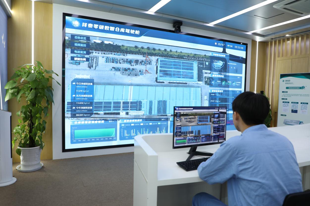 國網泰州供電公司物資部主任倪華豪介紹,為推動泰州能源行業綠色發展,從2021年開始,國網泰州供電公司就以構建綠色現代數智供應鏈為目標,以泰州供電公司祥泰倉庫為試點,開展數智、綠色化改造建設,將低碳理念與數智化技術結合,創新打造了數智零碳倉庫駕駛艙,融合倉庫智能作業、智能安防,推動管理監控全鏈條無人化、物資領用全場景自助化,實現倉庫能耗與碳排放監控、分析和精準控制。