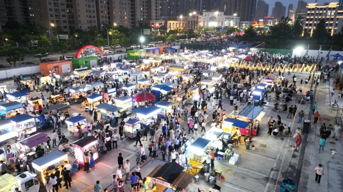 近日,海陵區京泰夜市正式開市,吸引了近1.2萬人前來打卡。夜市內流光溢彩,游人如織,煙火升騰的小城夜生活在這里拉開帷幕。 今年5月,為激活鄉村振興內生動力,京泰路街道朱塘社區、孫唐社區、十里鋪社區,利用閑置土地,打造了占地5000平方米的京泰夜市,匯集155個攤位,一次性解決了上百人的創業就業問題。