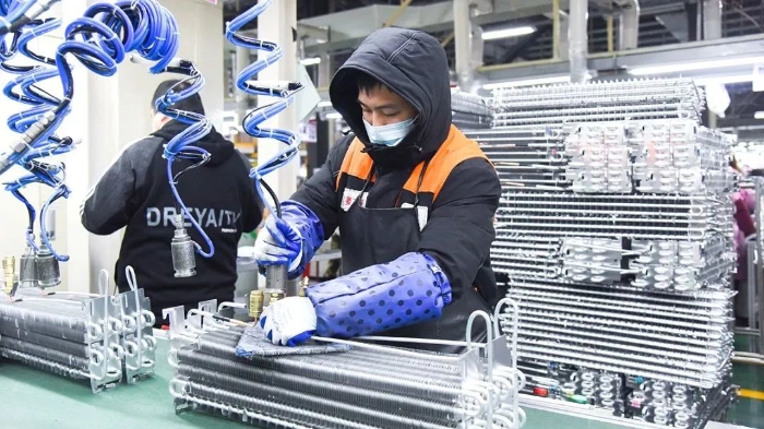 作為海陵智慧家電產(chǎn)業(yè)鏈的鏈主企業(yè),2022年樂金電子實(shí)現(xiàn)工業(yè)開票銷售93億元,“鏈”起本地配套企業(yè)突破30家,產(chǎn)業(yè)鏈規(guī)模超150億元,其中17家已成為規(guī)上企業(yè),涵蓋主控板、電機(jī)、壓塑機(jī)零部件等產(chǎn)品,產(chǎn)業(yè)鏈條完整。 蒸發(fā)器和冷凝器是空調(diào)、冰箱等制冷設(shè)備中的重要部件。位于海陵工業(yè)園區(qū)的泰州仕達(dá)利恩電子有限公司是一家韓國獨(dú)資企業(yè),主要生產(chǎn)銷售片式元器件、光電子器件及冰箱零配件。步入生產(chǎn)車間,產(chǎn)品通過傳送帶送到每個(gè)工序,一條生產(chǎn)線近30名工作人員配合默契。“我們目前有13條生產(chǎn)線,年產(chǎn)蒸發(fā)器冷凝器500萬套。2022年,企業(yè)實(shí)現(xiàn)工業(yè)開票銷售4.89億元。”公司管理部科長樸成介紹。