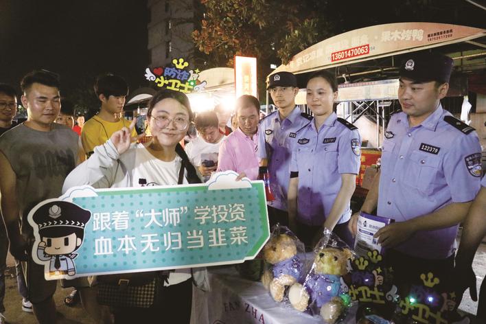 “以夜市擺攤的形式,用活潑大眾的方式,將反詐宣傳與之結合。”據派出所相關負責人介紹,“反詐鋪子”選在人流密集的小吃一條街,通過新穎有趣的內容,提高群眾對反詐宣傳的接受度,增強群眾“代入感”。