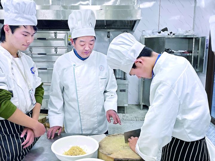 “干絲的粗細均勻一定要掌握好,既不能片得薄,切粗了,也不能片得粗,切薄了。”近日,“泰州早茶”進課堂開班儀式在泰州技師學院舉行,中式烹飪高級技師、技師學院特聘烹飪專業教師王學桂現場指導學生剽制干絲。這是將泰州早茶首次融入專業教學體系的改革實招,也是進一步深化校企合作、產教融合發展的重要舉措。